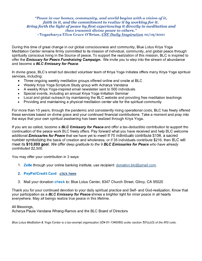 Blue Lotus Center invites you to become a BLC Emissary for Peace and reclaim your inner peace now.